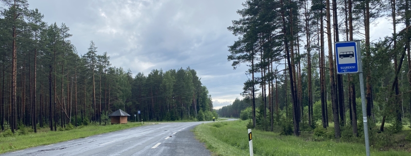 Die Route führt durch den Wald und es ist mit 22 Grad morgendlich frisch. Ein grosses blaues Kreuz steht plötzlich links im Wald, später kommt ein rotes auf der anderen Seite. Wenn noch ein weißes käme (was nicht kommt), wären die tschechischen Farben beisammen. Ein Reh geht weiter vorne über den Weg. Alles fühlt sich heute gemächlich und im Lot an. Es ist Sonntag. Wenig später entdecke ich gebückt stehende Menschen im Wald und da erst erkenne ich, dass der ganze Waldboden mit Heidelbeerbüschen bedeckt ist. Die Sammler sind sehr professionell mit Beerenkämmen ausgestattet. Etwas später in einem kleinen Ort mit hübsch herausgeputzten Häusern ist in einem Garten eine Familie unter einem Kirschbaum mit Leitern und Eimern versammelt. Es ist Obst-Erntezeit.